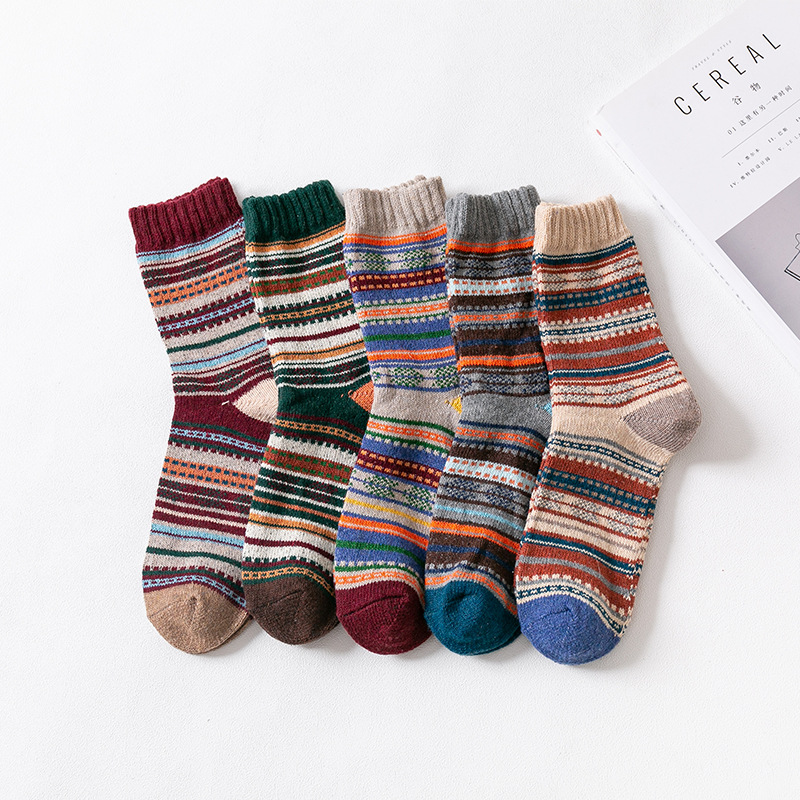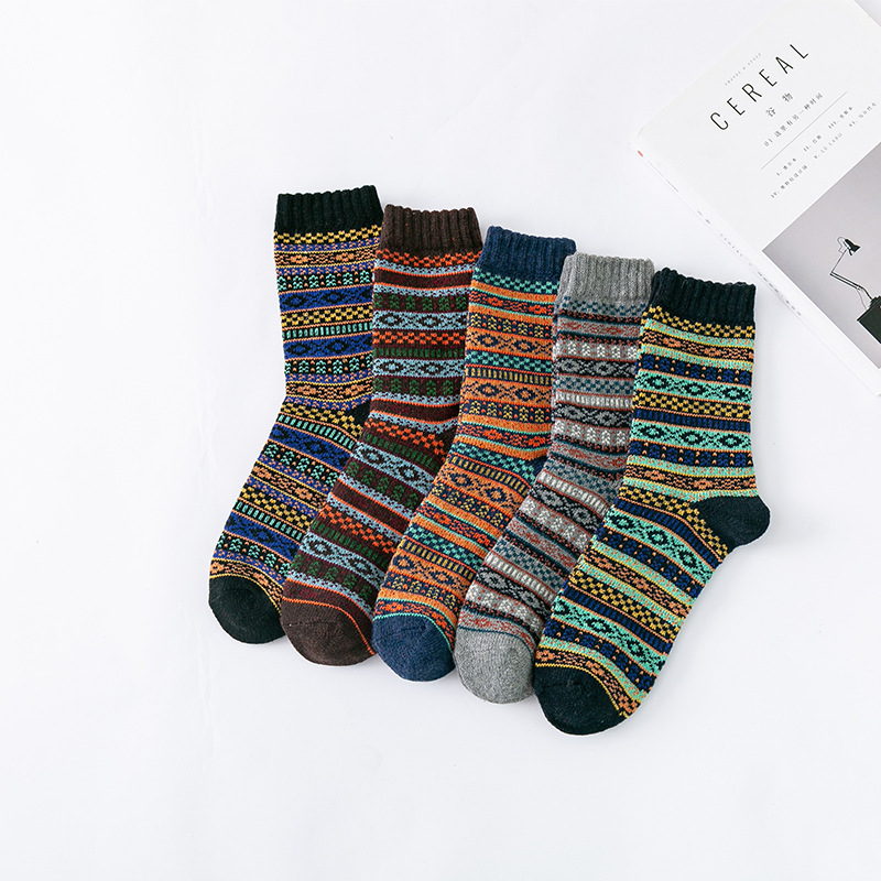 Thickened Men's Coarse Wool Stockings - 6004thick line fish / 5pair / One size